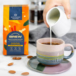 3 (or more for a stronger concentration) tablespoons per 6 ounces of water (cup). Brew just as you would any coffee grounds, you can use a regular coffee maker, French press, V60, or any drip coffee system. Our favorite method is the French Press.